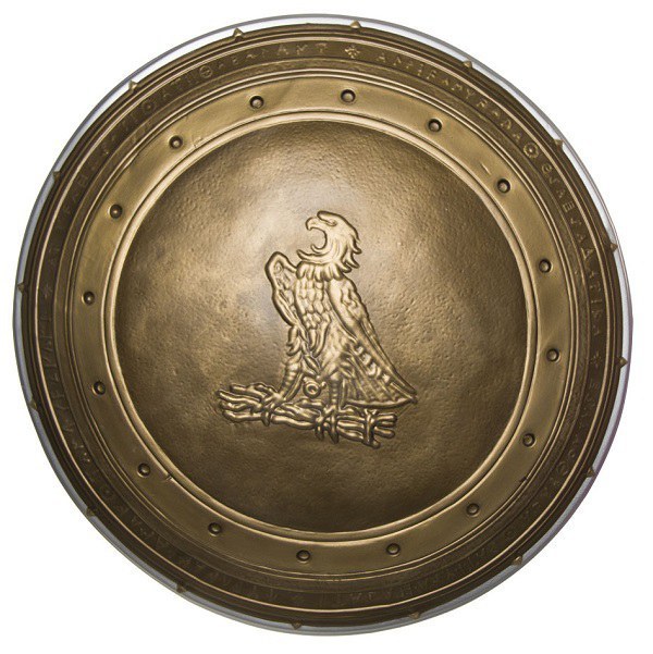 Wonder Woman Shield. Gold/Bronze with bird logo in the center.