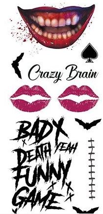 Complete your villainous look with these Joker-Inspired Temporary Tattoos! Featuring bold, edgy designs straight out of a comic book, this set is the perfect finishing touch for your Halloween costume or cosplay.
