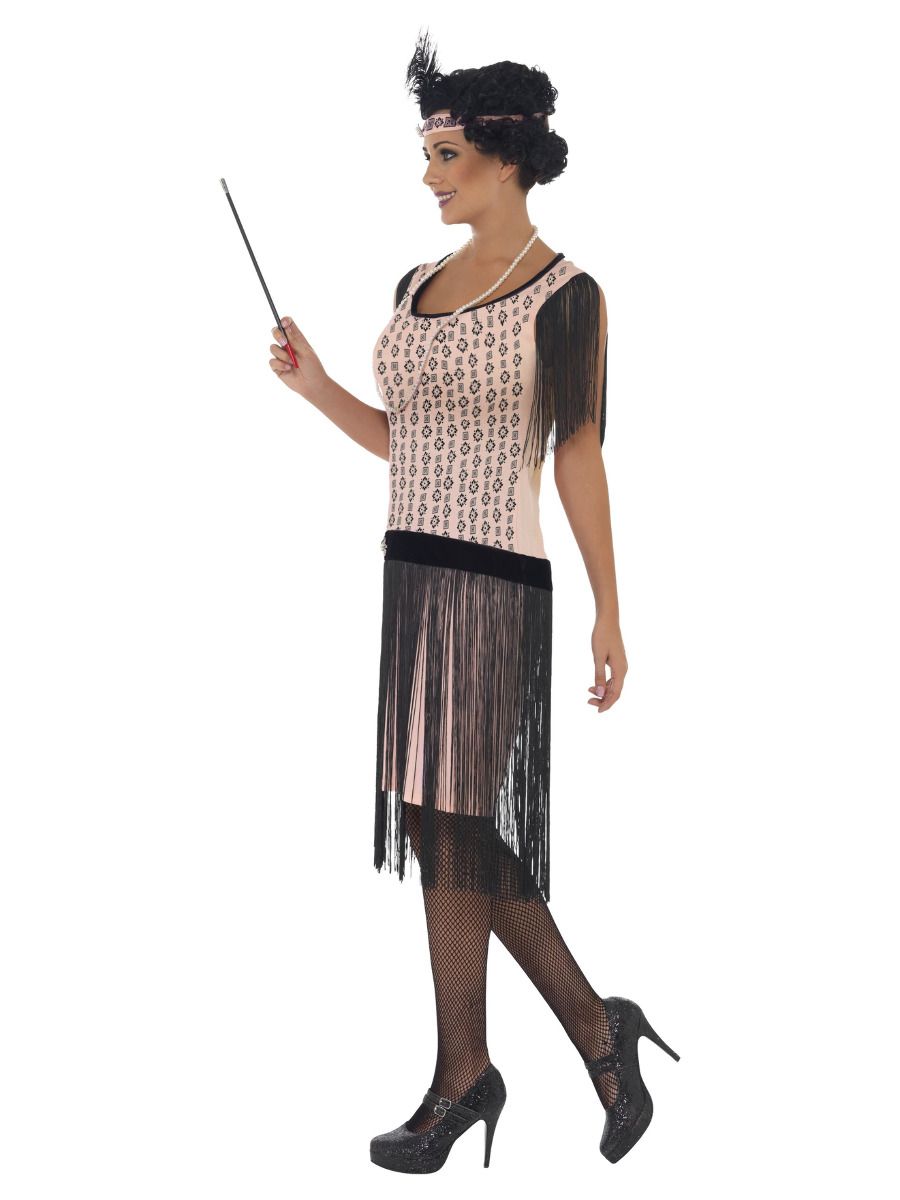 1920s Pink Flapper Costume includes a pink dress, cigarette holder, necklace & headpiece