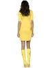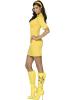 60's Mod Babe Costume includes a fun bright yellow stretchy dress with zip to fasten up front to the lovely rounded neckline. Also includes yellow buckled belt and headband.