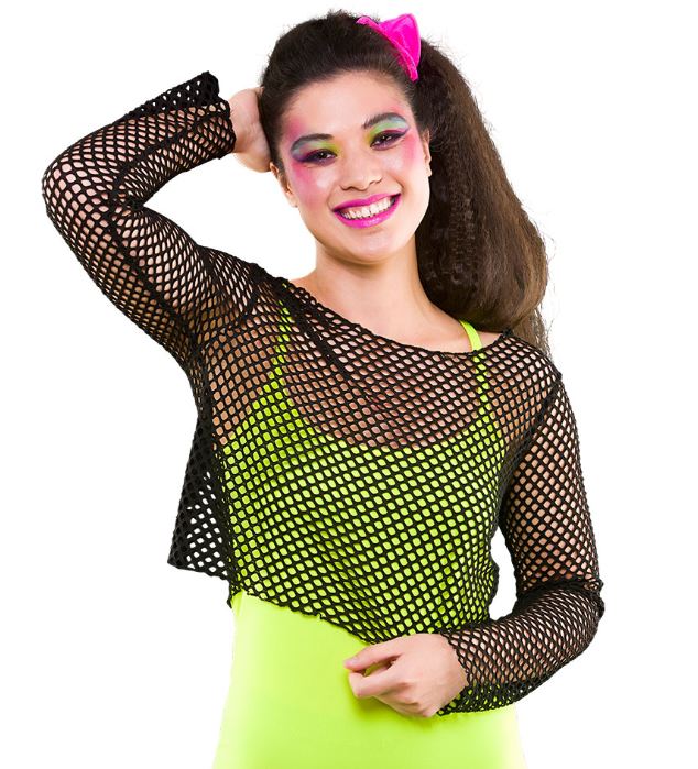 Channel classic retro vibes with this 80’s Fishnet Long Sleeve Top in black. Featuring a bold open fishnet design, this lightweight and breathable top is perfect for layering over bright camis, bodysuits, or crop tops to create an authentic 1980s-inspired outfit.