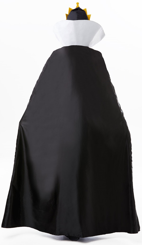 Pur Disney Evil Queen Costume includes a long dress with flowing sleeves and a red belt. The Costume also includes a red and black satin cape and a snood with crown.