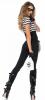 Bank Robbin' Bandit Costume includes a black and white striped catsuit with utility belt and rope. Also included is a a pair of black gloves and a black eyemask.