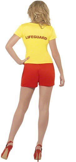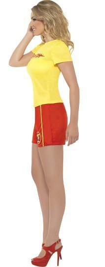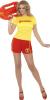 Baywatch Beach Costume from your favourite hit TV show. Transform into a beach goddess with this excellent costume featuring a yellow T-shirt with the "BAYWATCH" logo in red and a pair of red shorts which also feature the logo in yellow.