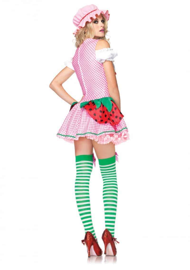Pink two Piece Berry Beauty Costume Set With Dress Strawberry Panniers And Matching Bonnet.