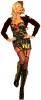 This Deluxe Bombin Betty costume is a camouflaged garter dress has novelty print accents and is prepared for any weather with the mini brown bomber jacket. To top off this military look a matching army hat and belt are also included.
