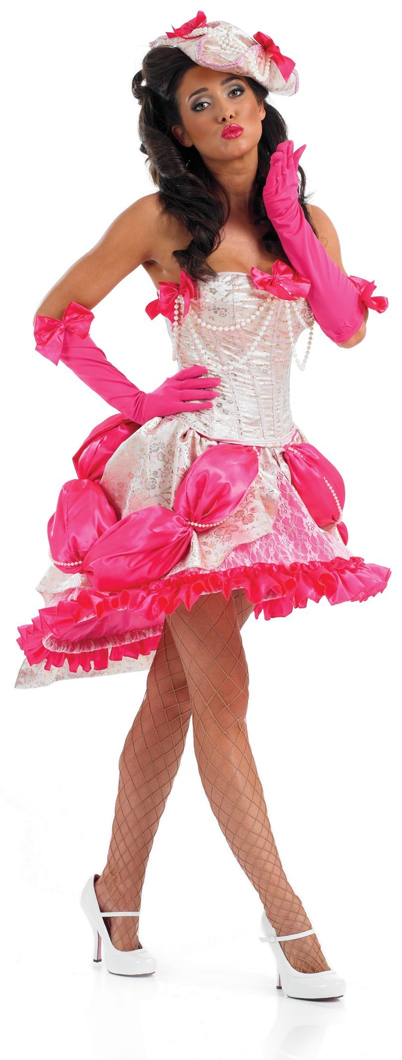 To complete this costume are the pink satin gloves and white hat again with pink bow detailing.