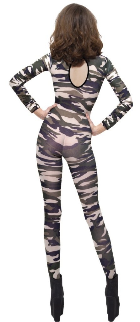 Long sleeved Camouflage print bodysuit.
