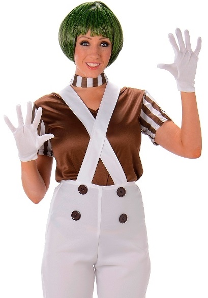 Bring the iconic Oompa Loompa costume to life with our Candy Maker Girl Costume. White dungarees with button detailing and a brown top. Costume also includes a pair of white gloves.