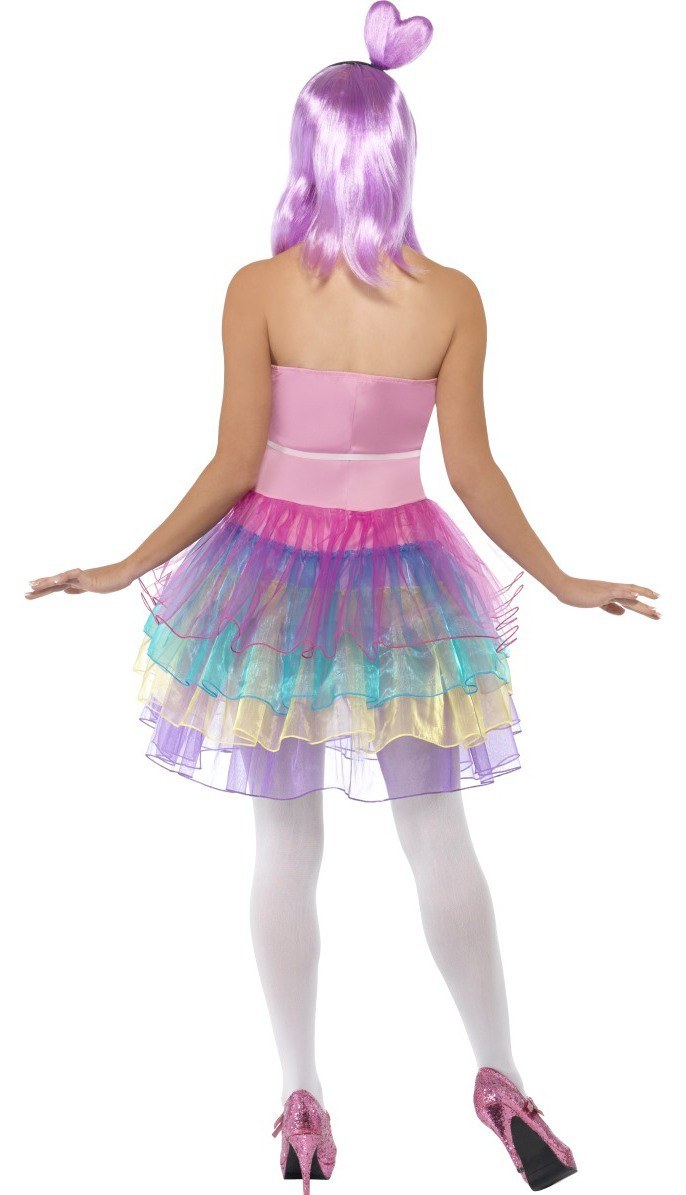 Candy Queen costume based on the singer Katy Perry consists of dress with tut style skirt and a latex bodice.