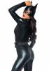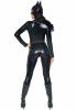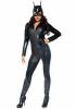 Captivating Crime Fighter Costume includes a black wet look zipper front catsuit and a black utility belt. To complete the look a bat ear mask is also included.