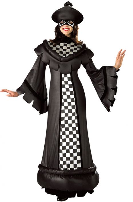 Chess Queen Costume includes a long printed chess piece dress. To complete the look a matching crown and eyemask is also included.