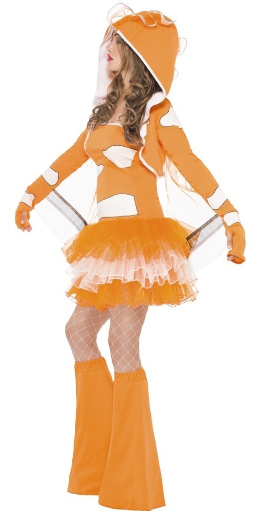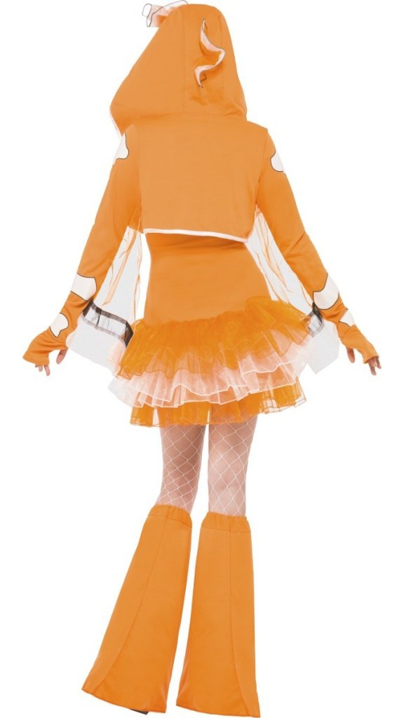 Clownfish Tutu Dress includes a orange and white dress with tutu style skirt and detachable straps. Also included is a matching jacket with hood.