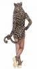 Cozy Leopard costume includes a leopard print zipper front fleece dress with a long tail and attached hand covers. The dress also features a hood.