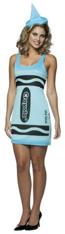 Bring your favourite Crayola crayon to life with this cute Crayola Sky Blue Adult Costume. The costume includes a short sky blue colour tank dress with the crayola logo and the words "sky blue" printed on it. Also included in the costume is a coordinating pointed hat.