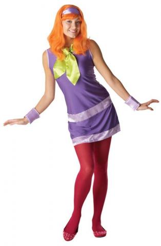 From the hit cartoon series comes our fully licensed Scooby Doo Daphne Costume. This mystery solving costume includes a purple sleeveless dress with a detachable green neck scarf. Also included is a pair of purple wrist cuffs.