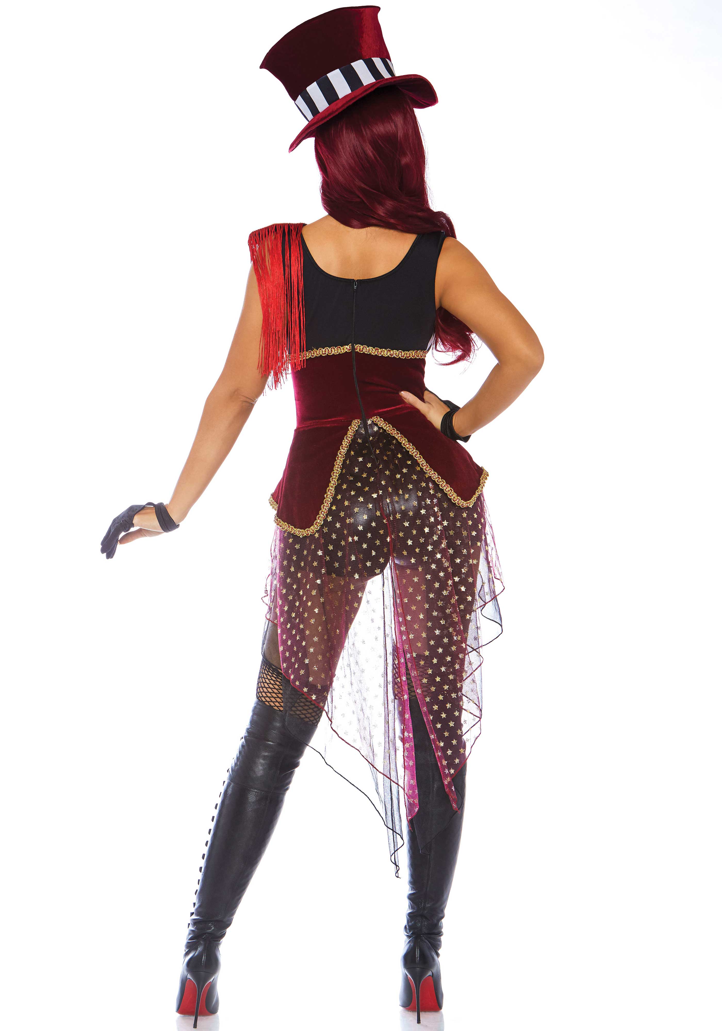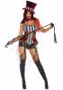 3 Piece Daring Lion Tamer, includes gold trimmed garter romper with velvet waistcoat and star bustle, bow tie, and matching velvet hat.