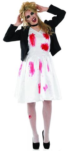 Perfect for an 80's themed party or that scary zombie halloween look. This dead bride will be keeping everyone up at night.