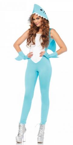 Deadly Land Shark Costume includes a one piece shark hooded catsuit with velcro back fin. To complete the look a pair of matching fin gloves are also included.