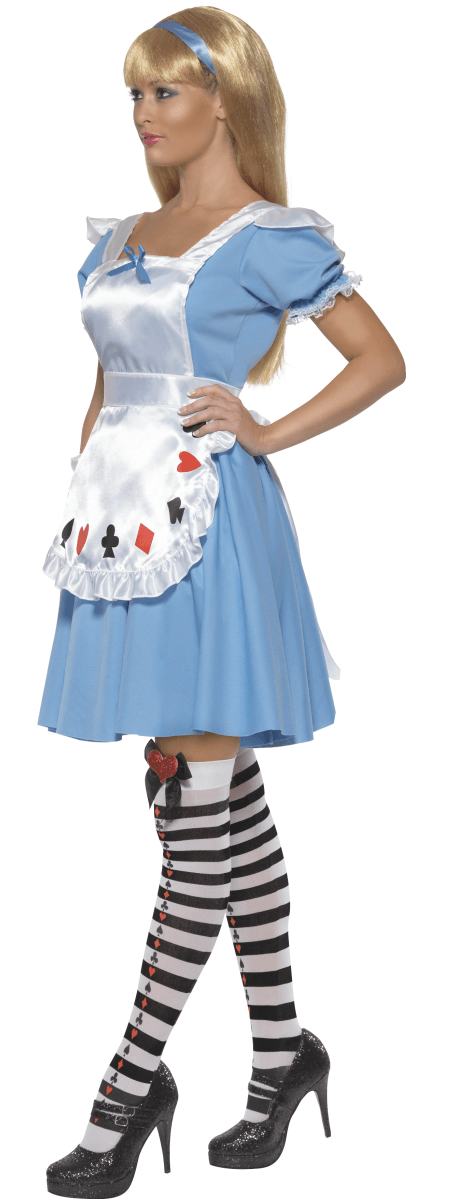 Deck Of Cards Girl Costume includes a blue and white dress with an attached apron.