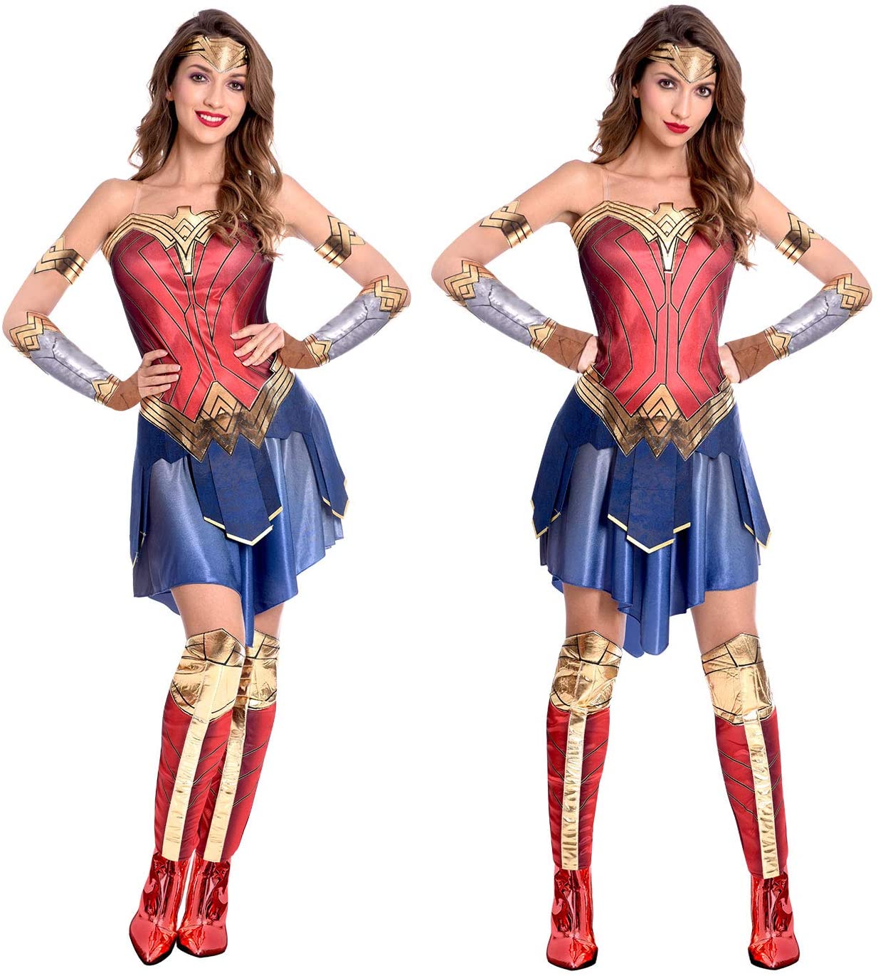 Our Officially Licensed costume includes this sleeveless dress which has a red and gold printed upper and a blue skirt. To accessorise is a gold foil belt, matching headband and a pair of gold and silver arm cuffs.