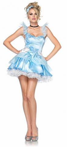 This sexy Storybook Babe costume includes a blue tiered dress with rosette and glitter accents. To complete this fairytale look a blue headband with rosette accents is also included.