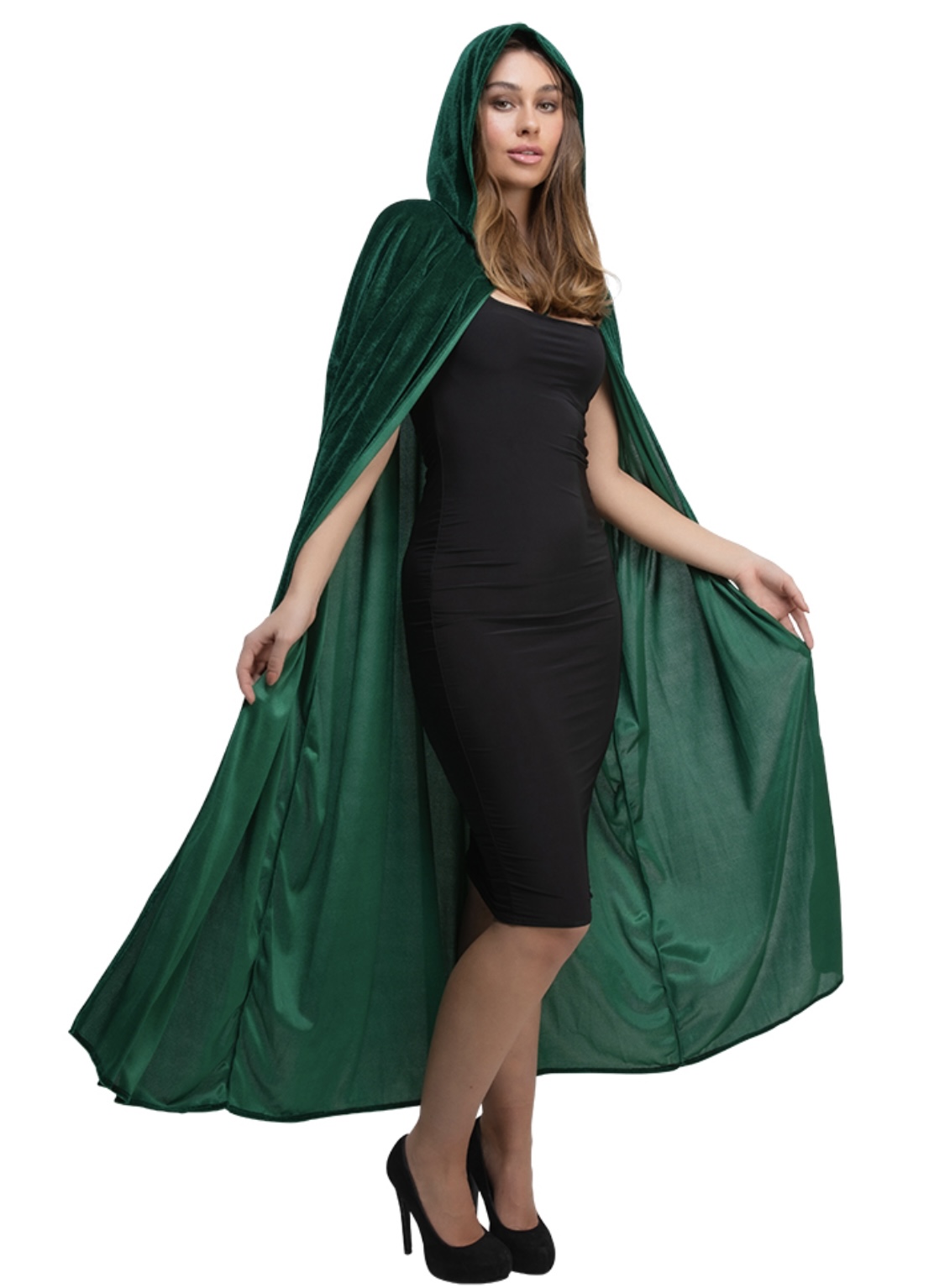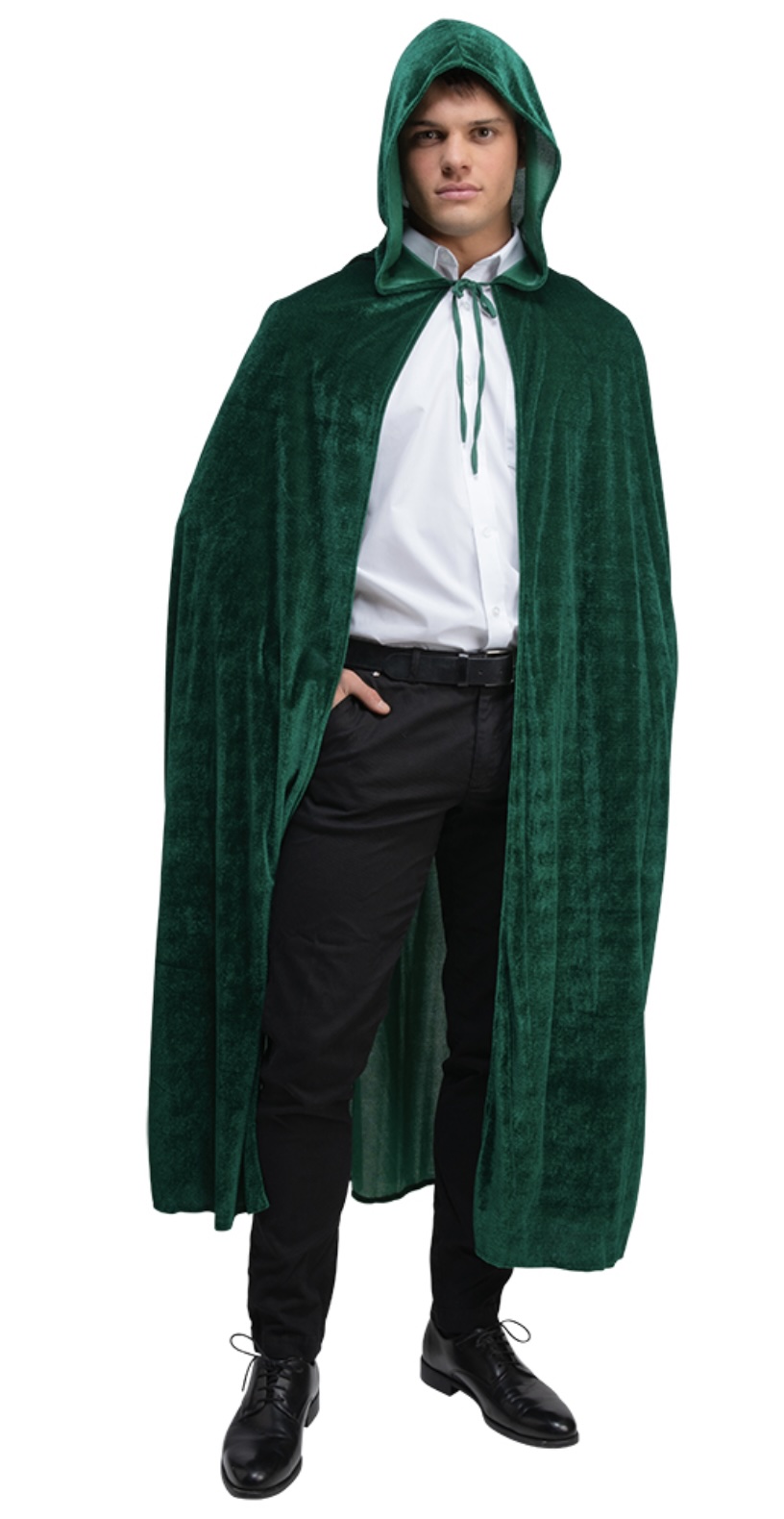 Wrap yourself in timeless elegance with this luxurious Deluxe Velvet Hooded Cloak in deep bottle green. Made from soft, rich velvet with a generous drape and full hood, this cloak adds instant drama and sophistication to any outfit. Whether you’re a mysterious sorcerer, medieval noble, woodland elf, or enchanting witch, this premium-quality cape completes your look with flair.