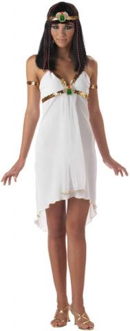 Egyptian Princess Costume includes white dress with contrasting golden trim, headband with medallion and armbands.