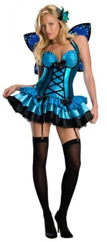 This gorgeous blue Fantasy Fairy costume has oomph and style. The ensemble includes a blue dress which has a fitted corset and attached garters. Also included are the blue wings and headpiece.