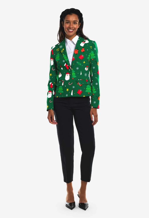 Celebrate the festive season with enthusiasm, delight, and the enchantment of Christmas. ou're aiming to embrace the joyful holiday spirit with a touch of style, our green Festivity blazer is the ideal choice. Own the Christmas magic – let the Festivity begin right here!