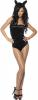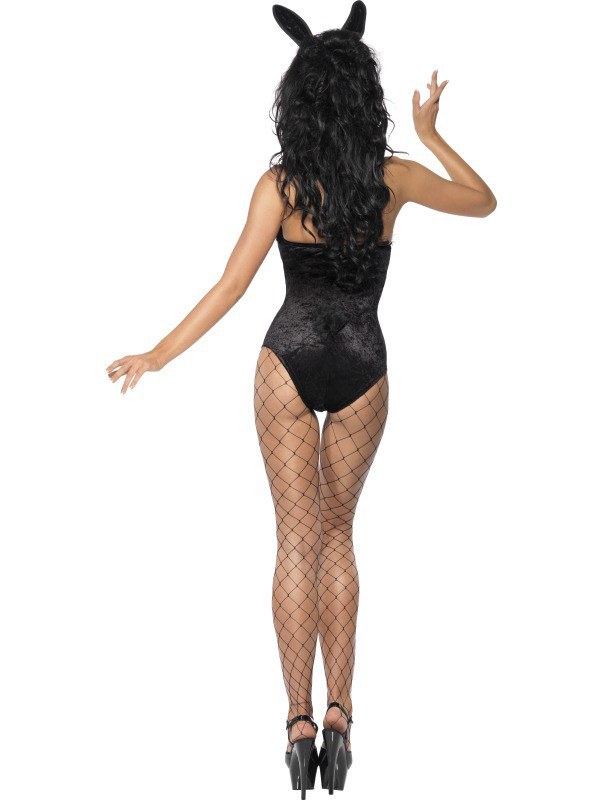 Look sexy in this attractive Fever Hostess Costume. Black in colour, the costume includes a velour leotard with faux fur trim, a head band with black ears and a small bushy tail.