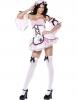 Fever Hot Little Miss Muffet costume includes a pink dress, a pink and white checked corset top with an attached apron with spider applique, checked peplum and a pair of pink and white checked sleeves with black ribbon bows. To complete the Hot look a coordinating hat is also included.