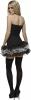 The Fever Skeleton Costume includes a bustier dress with a tutu-style bottom and detachable clear straps.