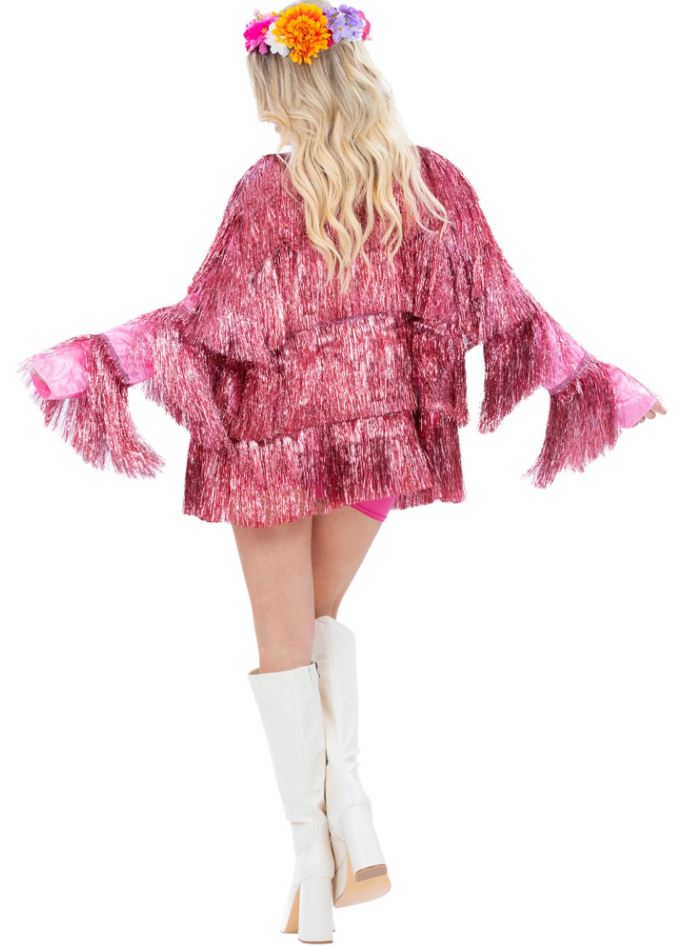 Add a pop of sparkle to your festival look with the Fever Tinsel Pink Festival Jacket. This vibrant, eye-catching jacket features shimmering tinsel fringe that’s perfect for turning heads at any event, from music festivals to costume parties. The bold pink color and playful design make this jacket a must-have for anyone looking to embrace fun, festival-ready fashion. Whether you’re dancing the night away or making a statement, this jacket is all about bold, carefree style and individuality.