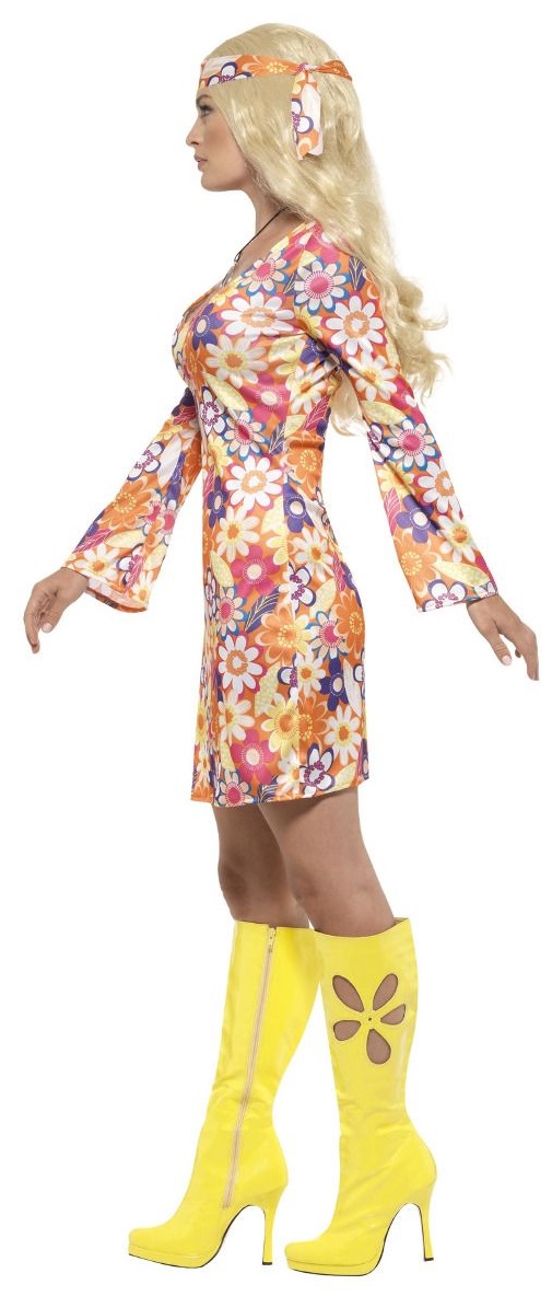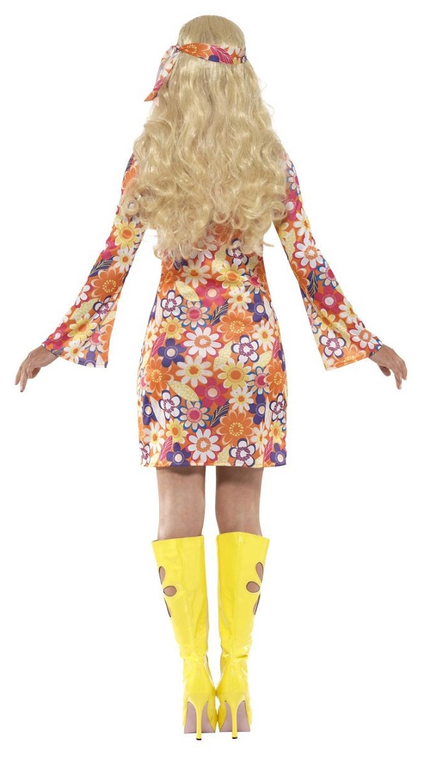 Feel the vibes of the 1960's in our Flower Hippie Costume. included in this groovy costume is a multicoloured flower dress with a matching headscarf. To complete the look a medallion is also included.