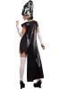 This complete costume includes a jagged end dress with stitch print and an attached waist corset, a matching long jacket, stitch print stockings and arm gauntlets and a black choker to finish.