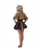 Frisky Kitty costume includes a black dress with pink lace up front and a leopard print trim and an attached tail. Also included is this cute costume is a leopard print hooded capelet with ears and a pair of matching gloves.