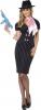 Step back to the roaring twenties with our Gangster's Moll costume. Included is a black and pink pin striped dress with button detailing and a pink neck scarf.