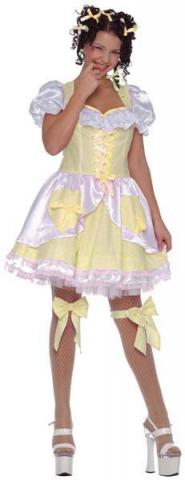 This cute Goldilocks costume includes a yellow and white gingham dress with bow and lace detailing. To complete the fairytale look two co ordinating ribbon garters are also included.