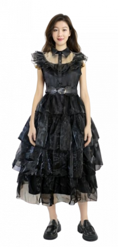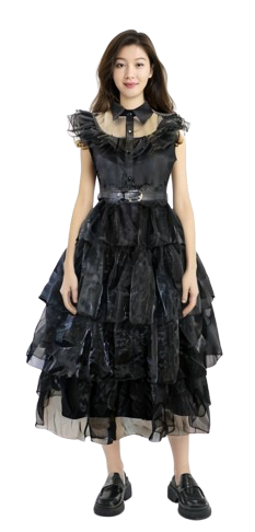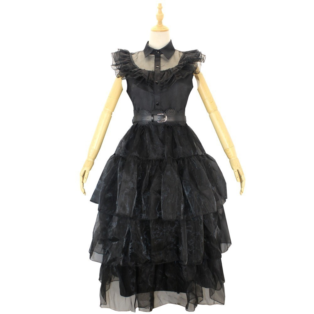 This Goth Formal Dress features a tulle skirt and neck detail. A faux leather belt is included.