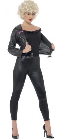 Grease Sandy Final Scene Costume includes a pair of black wet look leggings and a matching black jacket. Also included is an off the shoulder black top.