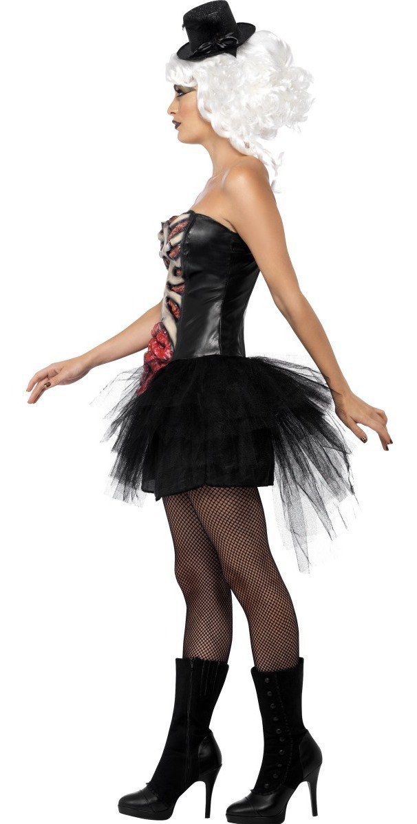 Grotesque Burlesque Corset with a gruesome latex ribcage and intestine. A great piece to complete any Halloween costume.