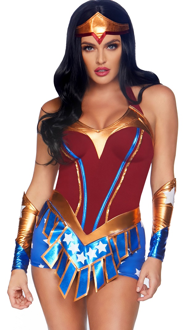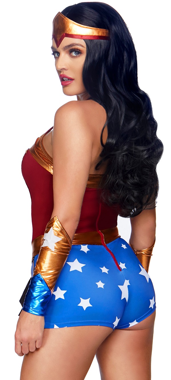 Be a sexy superhero at your next fancy dress event with our Heart-Stopping Heroine Costume. Included in this costume is a luxury detailed romper and a a pair of co-ordinating arm cuffs. To complete the look a matching headband is also included.