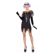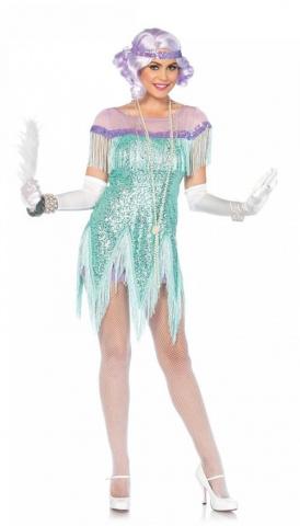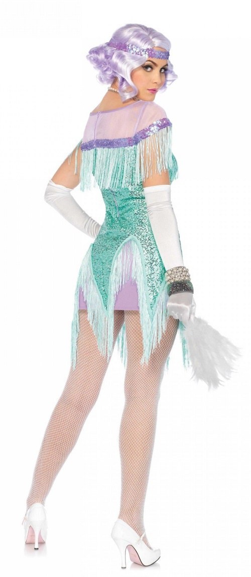 Foxtrot Flirt Costume includes a fringed trim sequin dress with zig zag hem and a matching sequin headband.