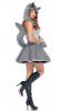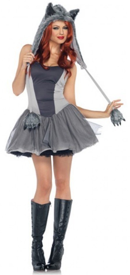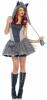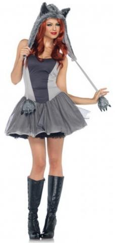 Ladies Gorgeous Grey Wolf 3 piece costume features a 2 tone grey petticoat mini dress and a snap on faux fur wolf tail. To complete the look a faux fur wolf hat with paw ties is also included.
