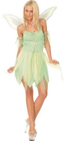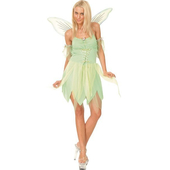 Be part of a fairytale at your next fancy dress party with our Ladies Neverland Fairy costume. This cute costume consists of a short green halter neck dress with a mesh overlay and lace up detailing. Also included is a pair of sleevelets and a pair of green fairy wings with strpas to hold securely on.
