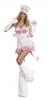Pretty Kitty costume includes a white and baby pink hooded velour dress with zip up front and an attached tail. The costume also includes a pair of fingerless gloves and boot covers.