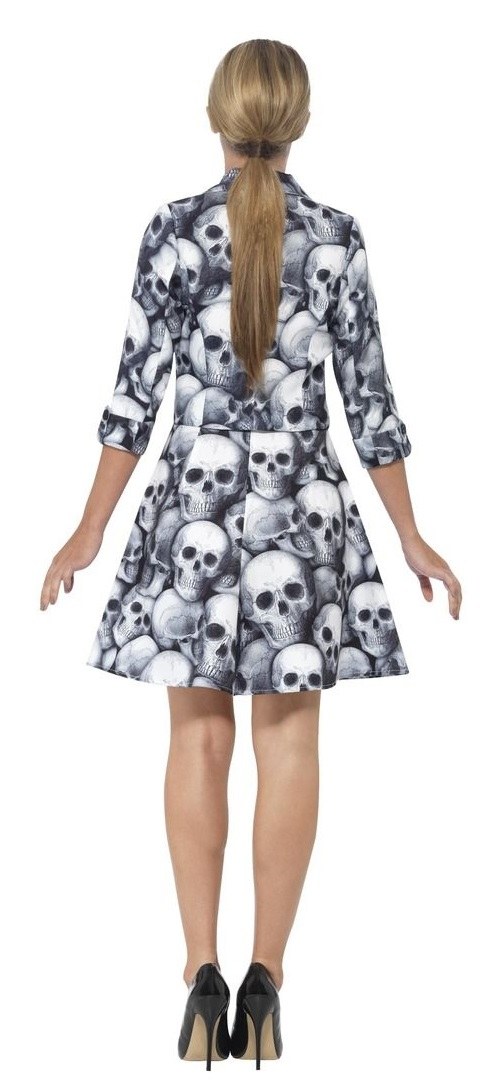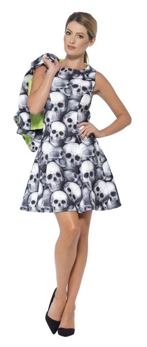 Ladies Skeleton Suit includes a skull print dress with a matching jacket.