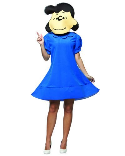 Our officially licensed Peanuts Lucy costume includes a short sleeved blue dress with a decorative collar and circular dress. To complete this famous cartoon look a foam filled Lucy mask is also included.