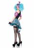 The Manic Mad Hatter includes High/Low Halter Dress With Checkerboard Skirt And Embroidered Clock Applique, Bow Chocker, Sheer Puff Sleeves and Matching Headband.